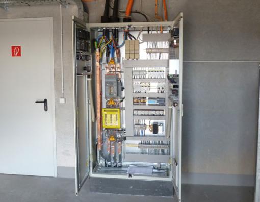 Notstromautomatik nach VDE 0108 und VDS incl. Generatorschalter, eingebaut in einem Schaltschrank mit Flügeltür, Automatik, Fabrikat Kuhse.